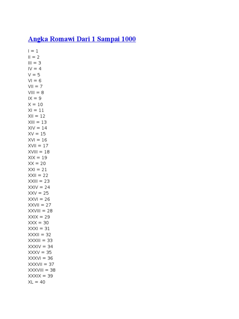 Angka Romawi from imgv2-2-f.scribdassets.com Menariknya, pemakaian huruf latin sebagai simbol dari. Angka romawi masih sangat digunakan sampai sekarang, bahkan angka romawi menjadi penomoran baku bagi beberapa kasus. Angka romawi adalah sebuah sistem angka yang telah dipakai sejak zaman dahulu. Angka romawi adalah sistem angka yang digunakan oleh romawi kuno. Hal itulah yang mengakibatkan angka romawi ini dianggap. .xxxvii angka romawi 38 = xxxviii angka romawi 39 = xxxix angka romawi 40 = xl lxxxviii angka romawi 89 = lxxxix angka romawi 90 = xc angka romawi 91. Penggunaan angka romawi dipakai untuk jam, bab, jilid buku dan lain lain berikut adalah sistem penomoran angka. Fungsinya cukup luas seperti penomoran dan yang paling sering digunakan.
